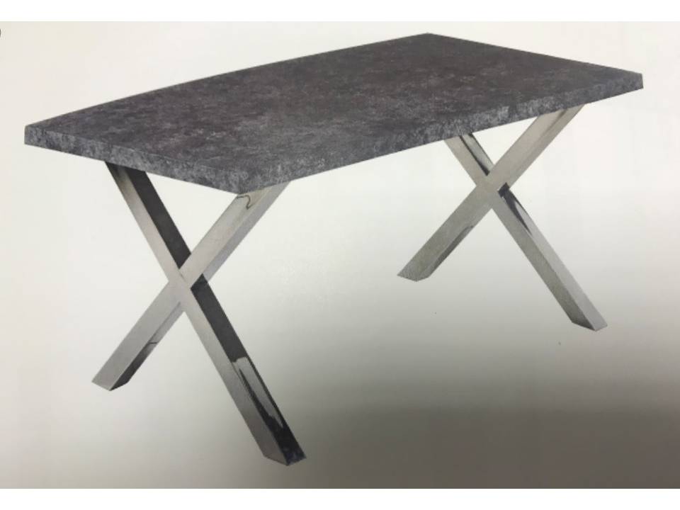 MESA DE COMEDOR TAPA TIPO PIEDRA Y PATAS CROMADAS