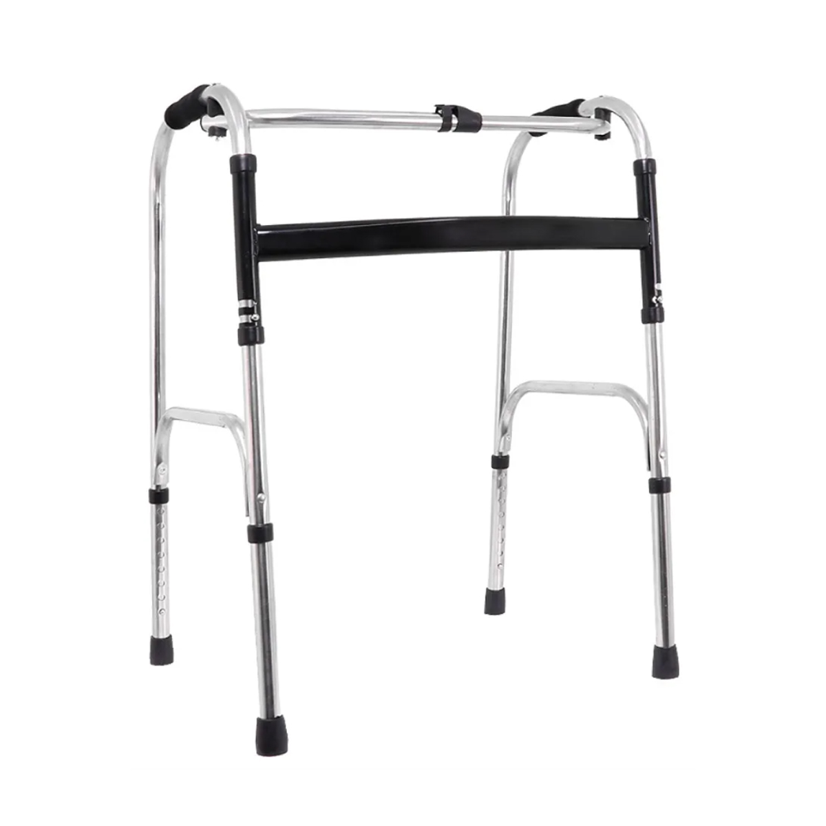 Andador Ortopedico Con altura ajustable con 8 niveles Material: Acero Inoxidable Reforzado Soporta hasta 100 kg Sistema de seguros prácticos para plegar y desplegar con facilidad. Topes de goma antideslizantes