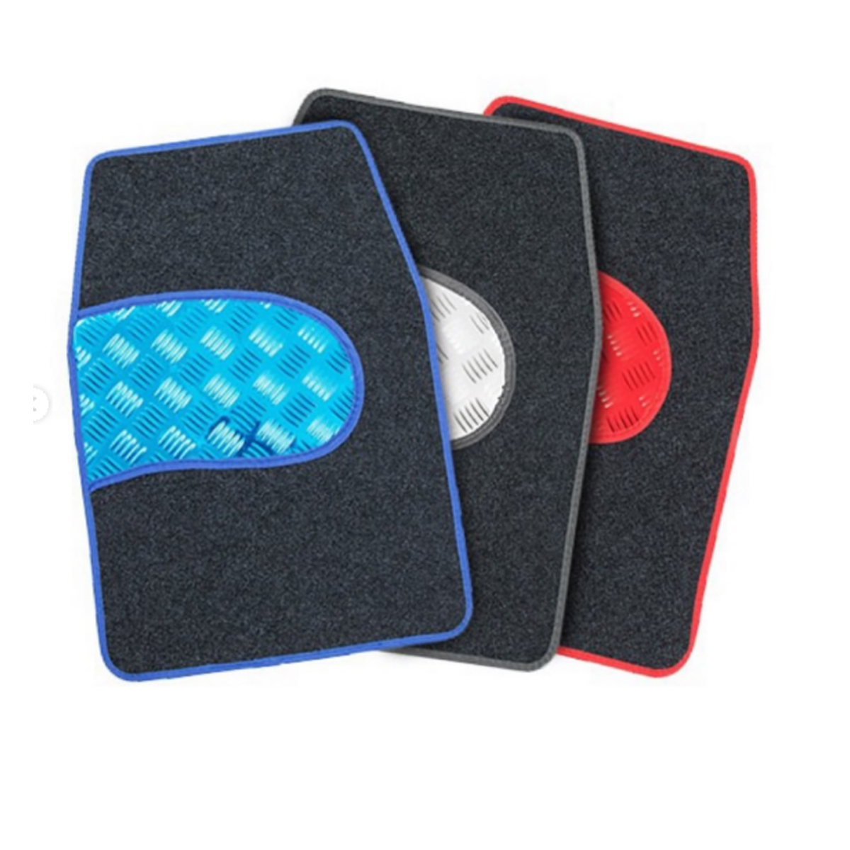 Alfombra de AutoSet de 4 PiezasMaterial resistenteFacil de limpiarDiseño bordes de colorRefuerzo antideslizante metalizado